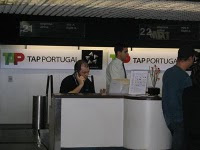 Chegando ao aeroporto, você procura o balcão da TAP. É possivel que tenha duas filas de check-in, uma maior, para meros mortais como nós, e outra menor pra classe executiva e 1a classe. Mas por vezes só tem uma, não se preocupe. É possível que tenha uma pessoa dando informação no final da fila, a quem você pode mostrar sua passagem e preguntar se está na fila certa.