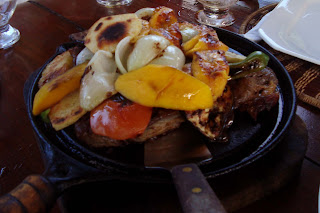 Como já disse, a diversidade de tipos e preços de restaurantes é grande. No dia em que chegamos, almoçamos no Tapera. Apesar do preço não ser dos mais baratos (uns R$30 por pessoa), o lugar é sensacional. Ambiente agradável e muito bem decorado, serviço personalizado e comida maravilhosa. O carro-chefe da casa são as chapas de carnes variadas (picanha, filé mignon, frango…) acompanhadas de frutas e legumes. A porção serve duas pessoas com generosidade.