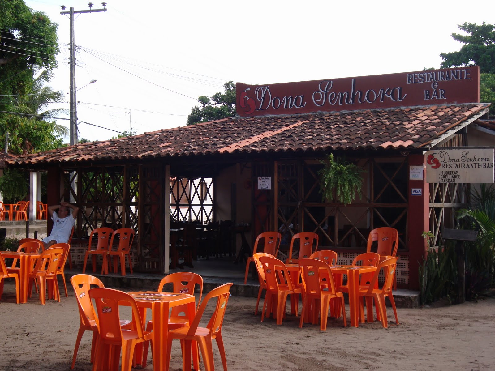 Depois descobrimos opções mais baratas para o almoço. Um restaurante que fica na rua principal da vila serve pratos feitos a R$7,00 para uma pessoa ou R$12 para duas. A comida é boa, as porções são fartas e o dono do estabelecimento, que serve pessoalmente os clientes, ainda nos ofereceu amostras da comida do dia (no caso caruru e vatapá).