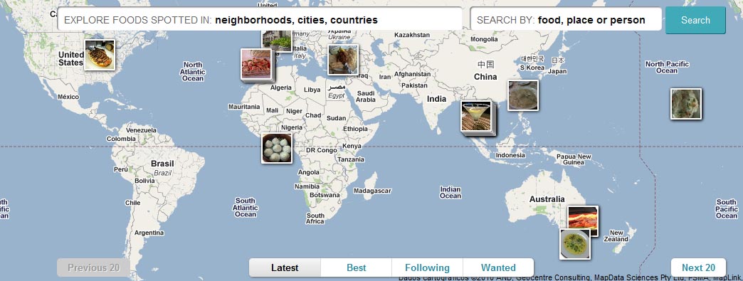 Fui apresentada a uma iniciativa interessante semana passada, o Foodspotting. Trata-se de uma ferramenta de geolocalização especificamente para colocar fotos de comidas que você recomenda. A página tem um grande mapa mundi onde você pode buscar o local exato e colocar sua foto. Além de, claro, ver as sugestões já deixadas por lá. O site é novo e por isso ainda tem pouca informação, mas é bem interessante.