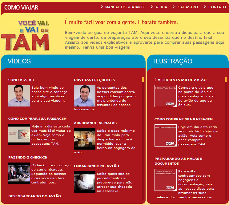 Descobri esses dias que a TAM tem um site voltado para aqueles passageiros que estão indo viajar pela primeira vez. Achei bem interessante porque sempre percebi muita demanda para esse tipo de conteúdo e com a quantidade cada vez maior de pessoas viajando, isso pode ser muito útil.