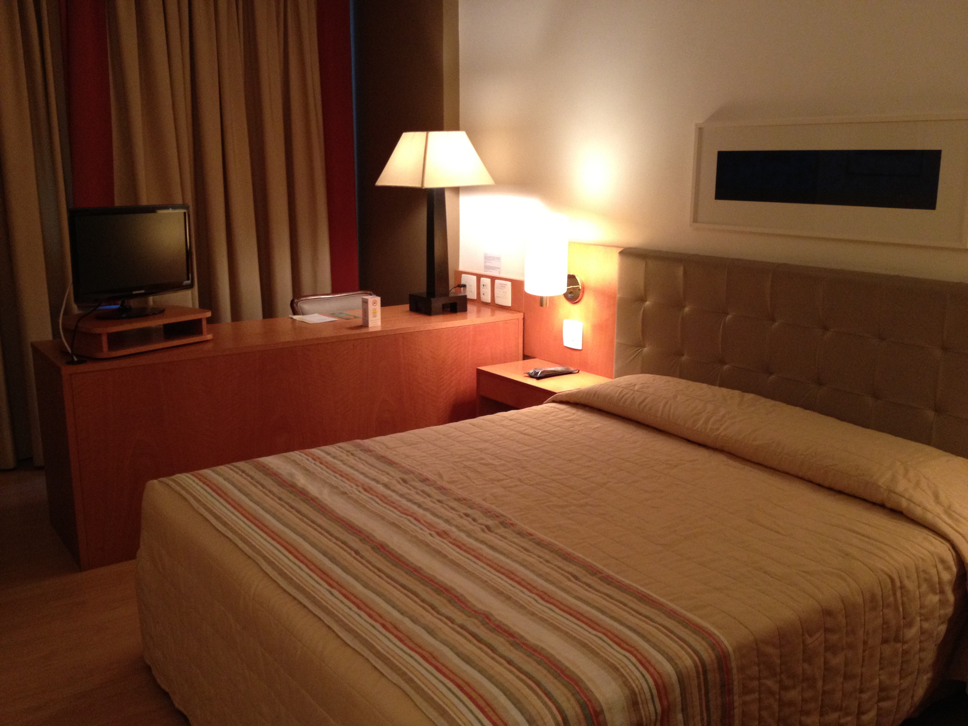 O quarto é funcional. Nem muito espaço nem apertado, mas limpo e todos os itens básicos para uma boa estada: boa cama, bom chuveiro, lugar para colocar a mala, cabides e escrivaninha.