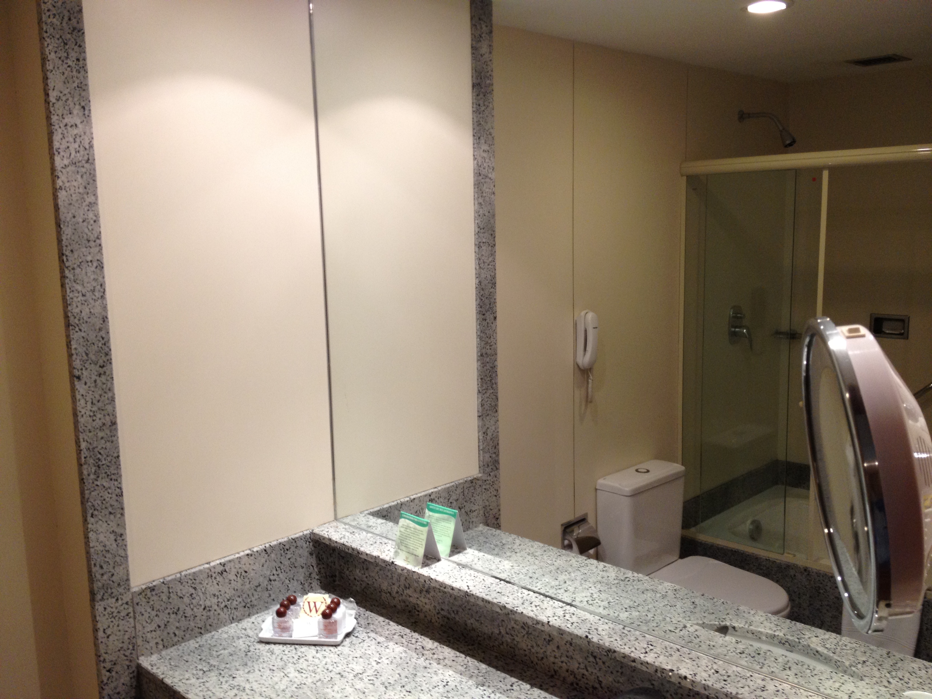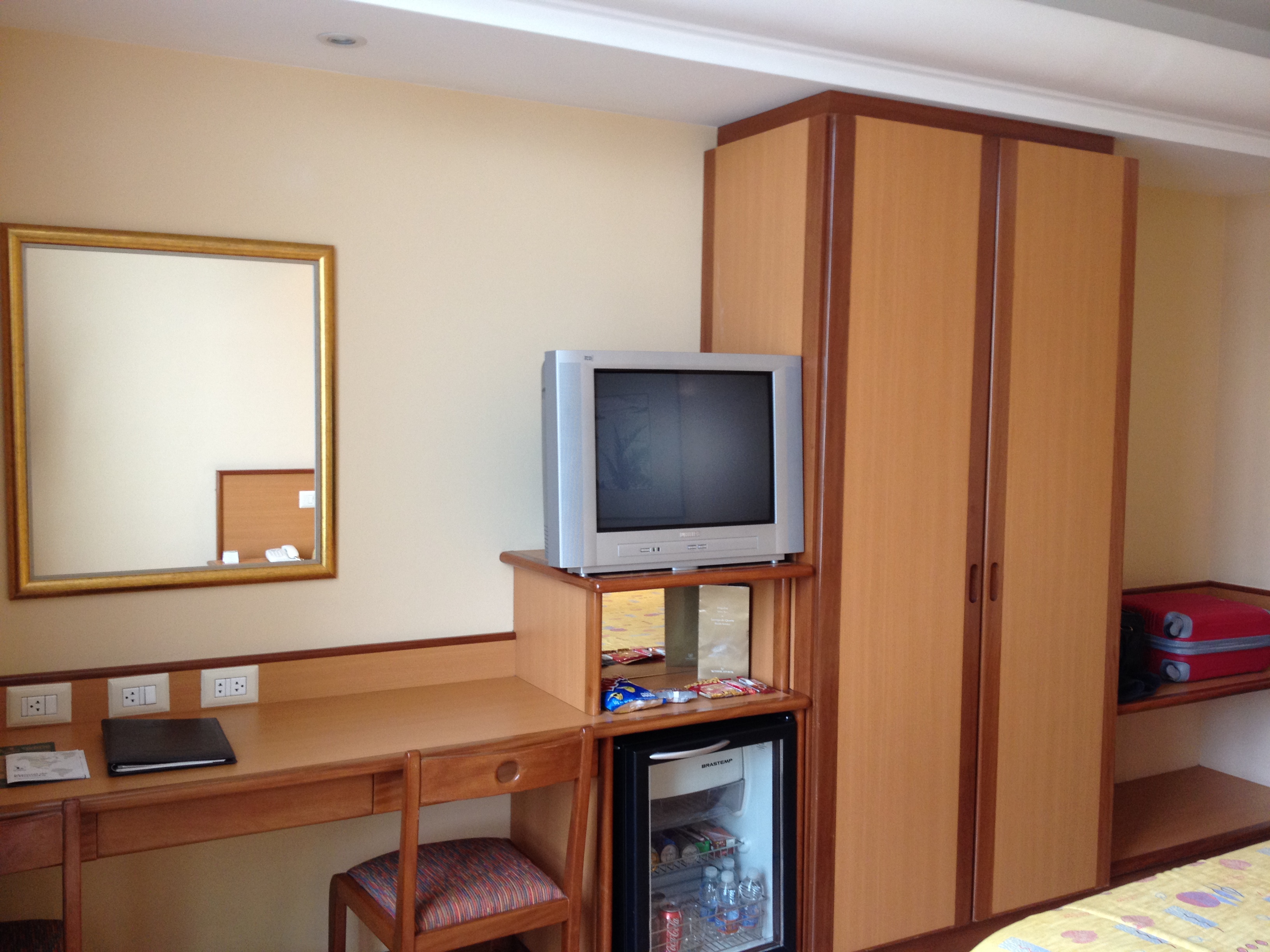 Bom, sobre o hotel em si, o quarto é simpático, com uma cama bastante ampla, cabides, espaço pra mala. O banheiro é ótimo, muito espaçoso e com banheira e chuveiro, além de espelho ampliador pra maquiagem. O fraco mesmo é a vista, que no caso do meu quarto era para uma edificação lateral. Os funcionários são muito solícitos e o café da manhã, apesar de não ter muitas opções, também não deixa a desejar. Sem dúvida é uma boa opção para quem quer ficar no centro.