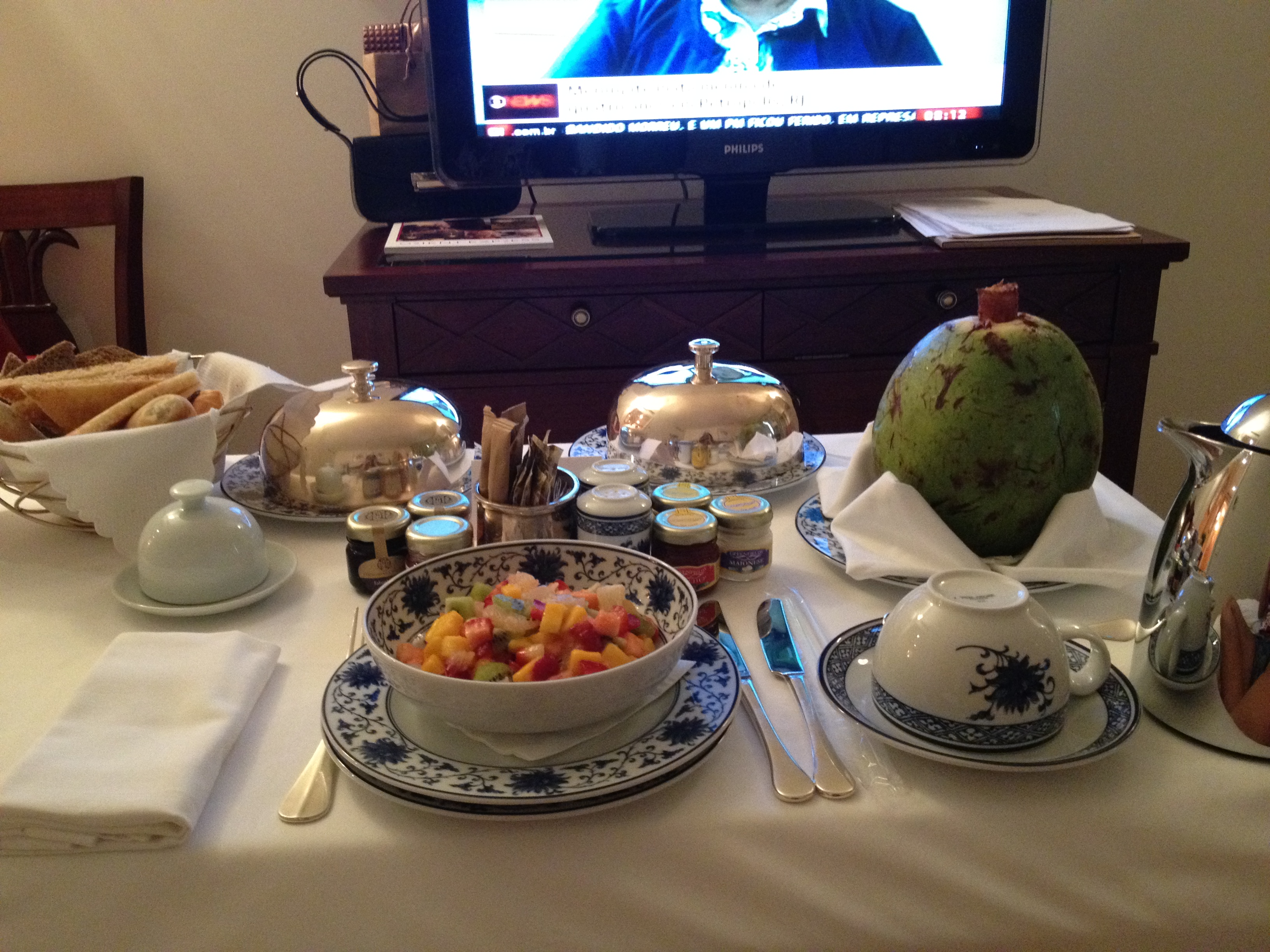 Um diferencial muito bom é o fato de servir café-da-manhã no quarto e a la carte. Ao final do dia eles deixam um formulário no quarto para que você escolha o horário e cardápio do seu café-da-manhã. No dia seguinte, pontualmente no horário pedido e com pratos na temperatura ideal, seu café é entregue.