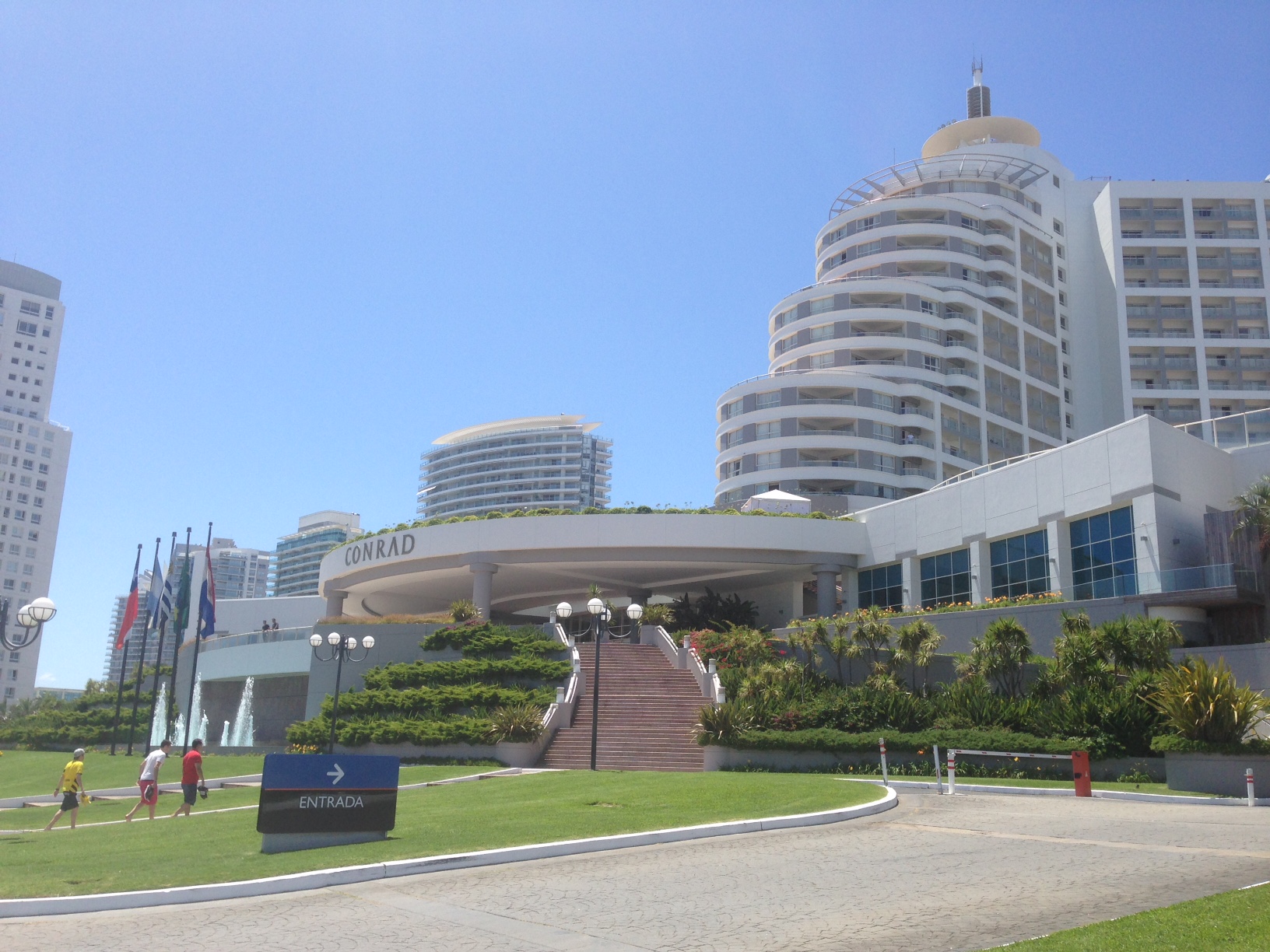 Conrad Cassino: a alguns metros do monumento Los Dedos, é uma visita imperdível. A arquitetura surpreende, não só do Hotel Cassino como dos prédios ao redor. Modernos, altíssimos e suntuosos. Nem de longe se parecem com os balneários praianos brasileiros. É possível entrar no Conrad gratuitamente (não se sinta intimidado, entre), conhecer o cassino sem tirar fotos, ver as lojas no lobby do hotel, apreciar a sala de convenções e tirar muitas fotos do alto das escadarias. A vista é LINDA!
