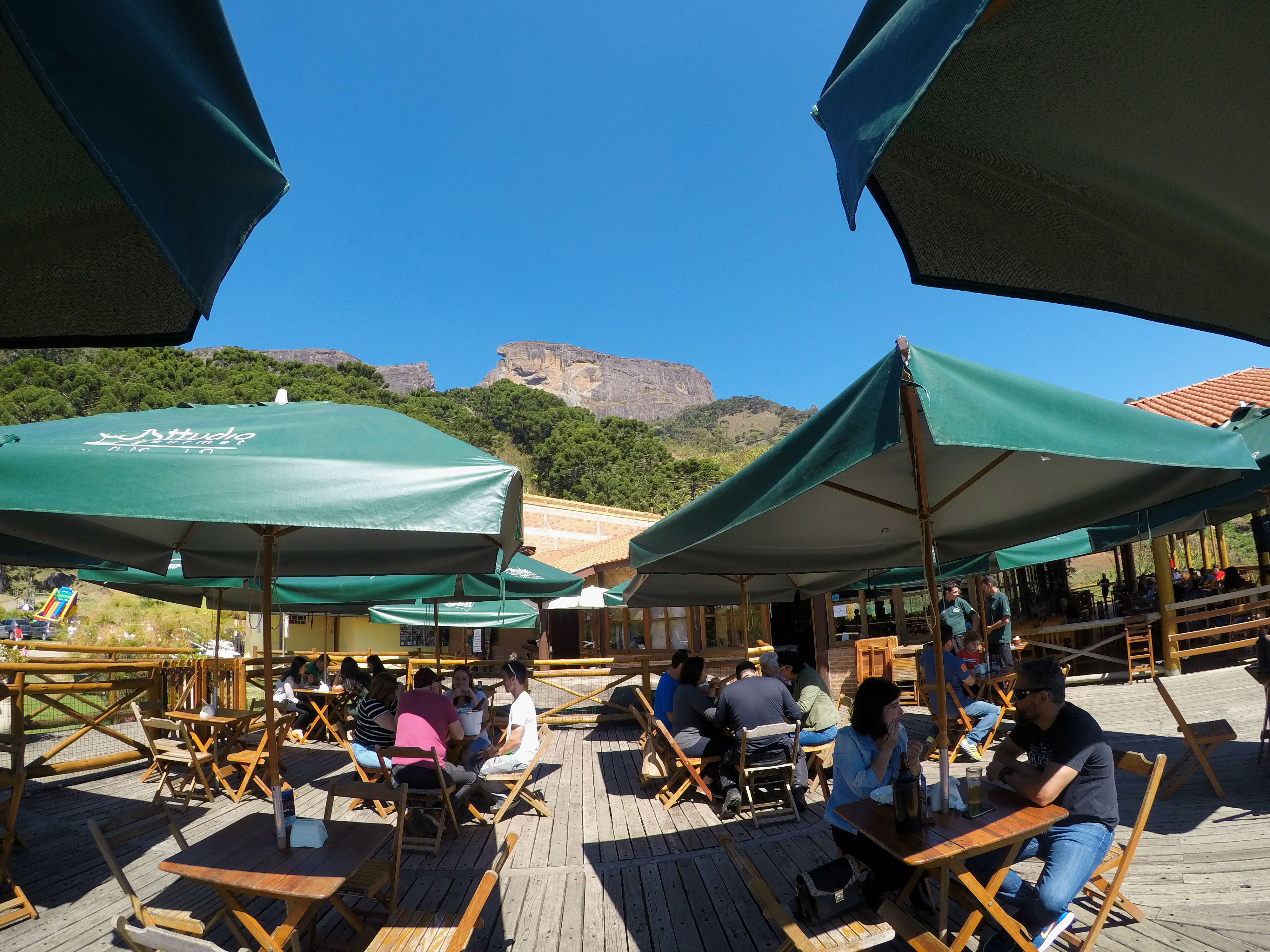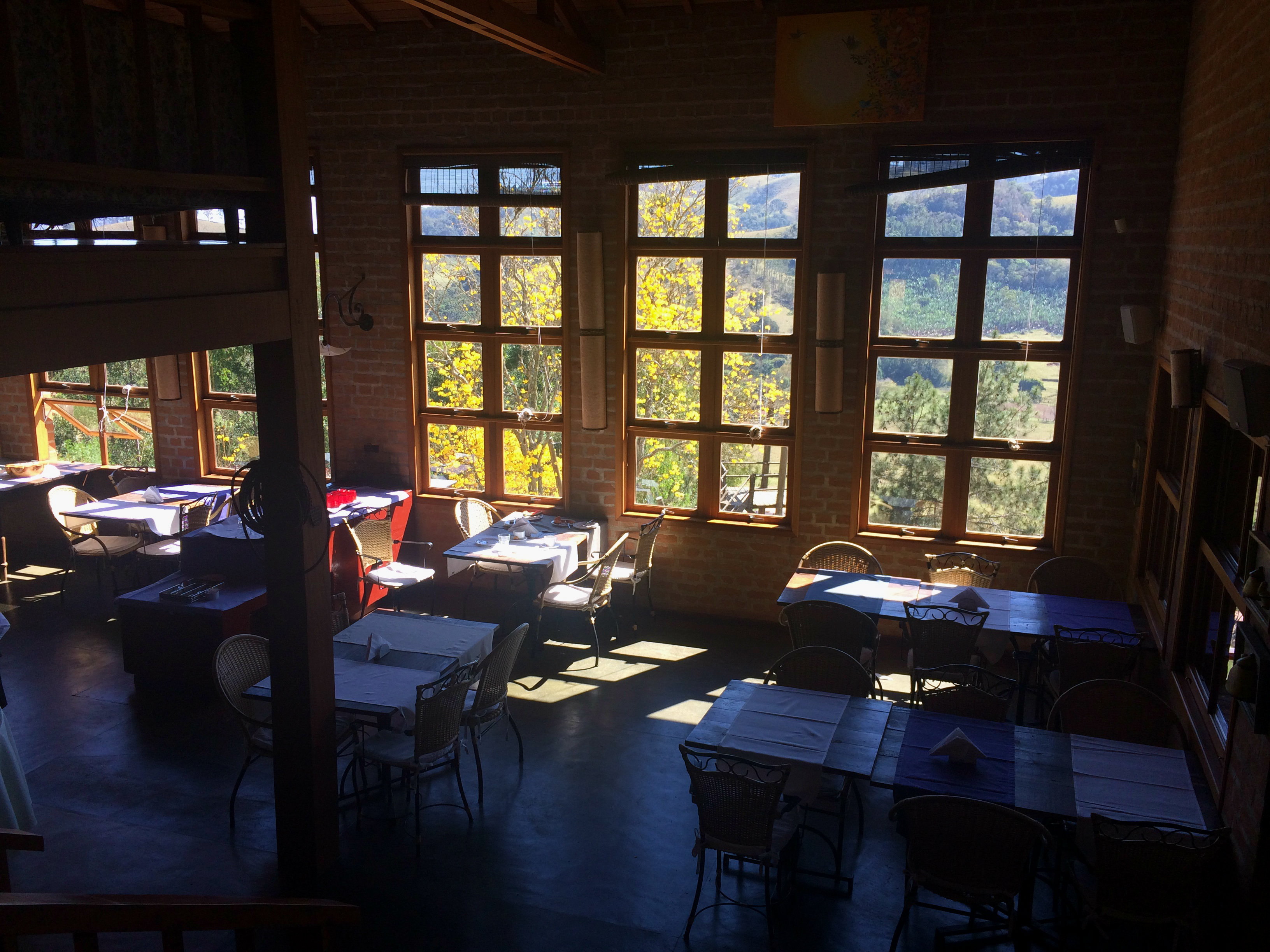 Ficamos na Pousada do Quilombo, que agora adotou o nome de Resort, mas felizmente não tem nada que lembre piscinas lotadas, restaurantes com comida de carregação ou coisas do tipo. Nosso quarto era extremamente confortável e tinha tudo que você precisa nessas ocasiões: uma boa cama, um chuveiro delicioso, uma lareira preparada para ser acendida e uma varanda maravilhosa de onde pudemos ver o céu estrelado à noite e curtir os primeiros raios de sol da manhã nascendo atrás da Pedra do Baú. Simplesmente incrível. Eu não queria vir embora.