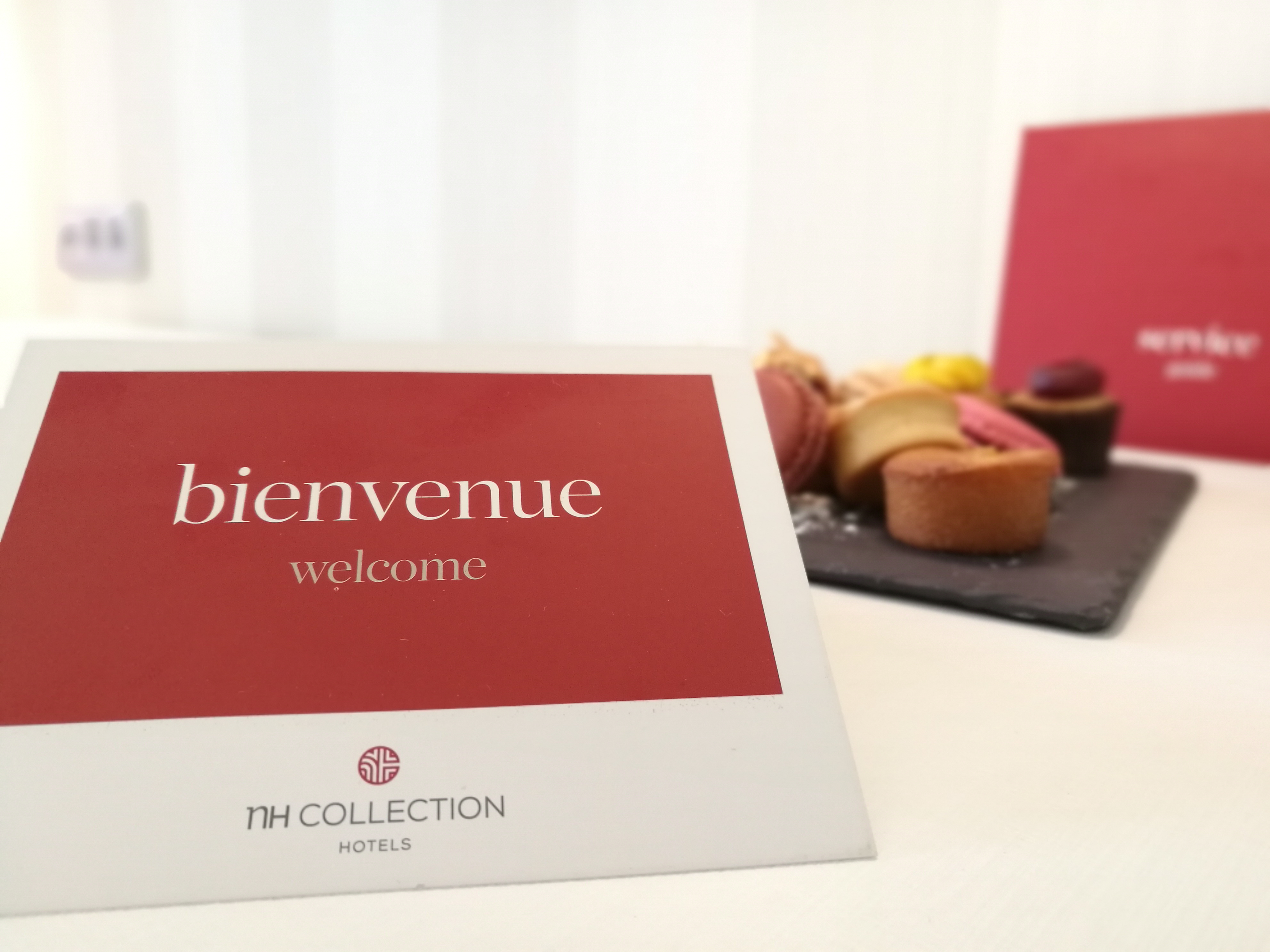 Andei um pouco arrastando minha mala de rodinha pela calçada em reforma da praça De Bruckère e em poucos passos cheguei ao NH Collection Brussel Centre, que eu tinha reservado poucas semanas antes. Logo na entrada, uma sensação boa tomou conta de mim. Primeiro, o prédio oferecia o calor que eu precisava e logo comecei a tirar os 237 acessórios de frio que carregava. Segundo e mais importante, o lobby do hotel era lindo e elegante, eu realmente tinha acertado na escolha. Que coisa boa é acertar na hospedagem durante uma viagem.