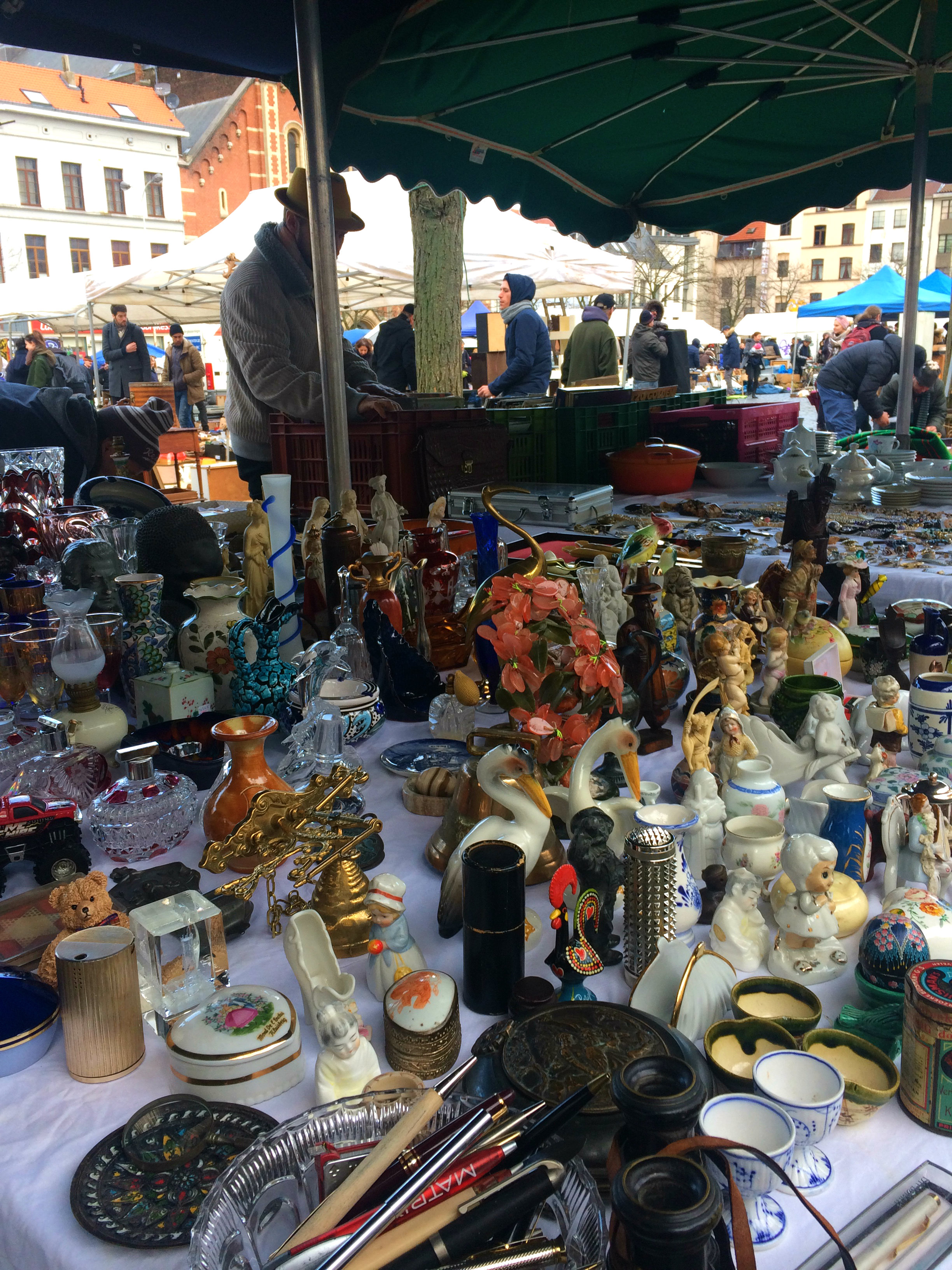 Domingo em Bruxelas é dia de feira de antiguidades na praça Jeu de Balle. Depois do super generoso e diversificado café da manhã do hotel, servido no terraço com uma vista magnífica para a cidade, parti pra explorar essa outra região da cidade. Com uma aparência menos histórica e cheia de cafés, restaurantes e lojas moderninhas, a região é super agradável para uma caminhada num domingo ensolarado.